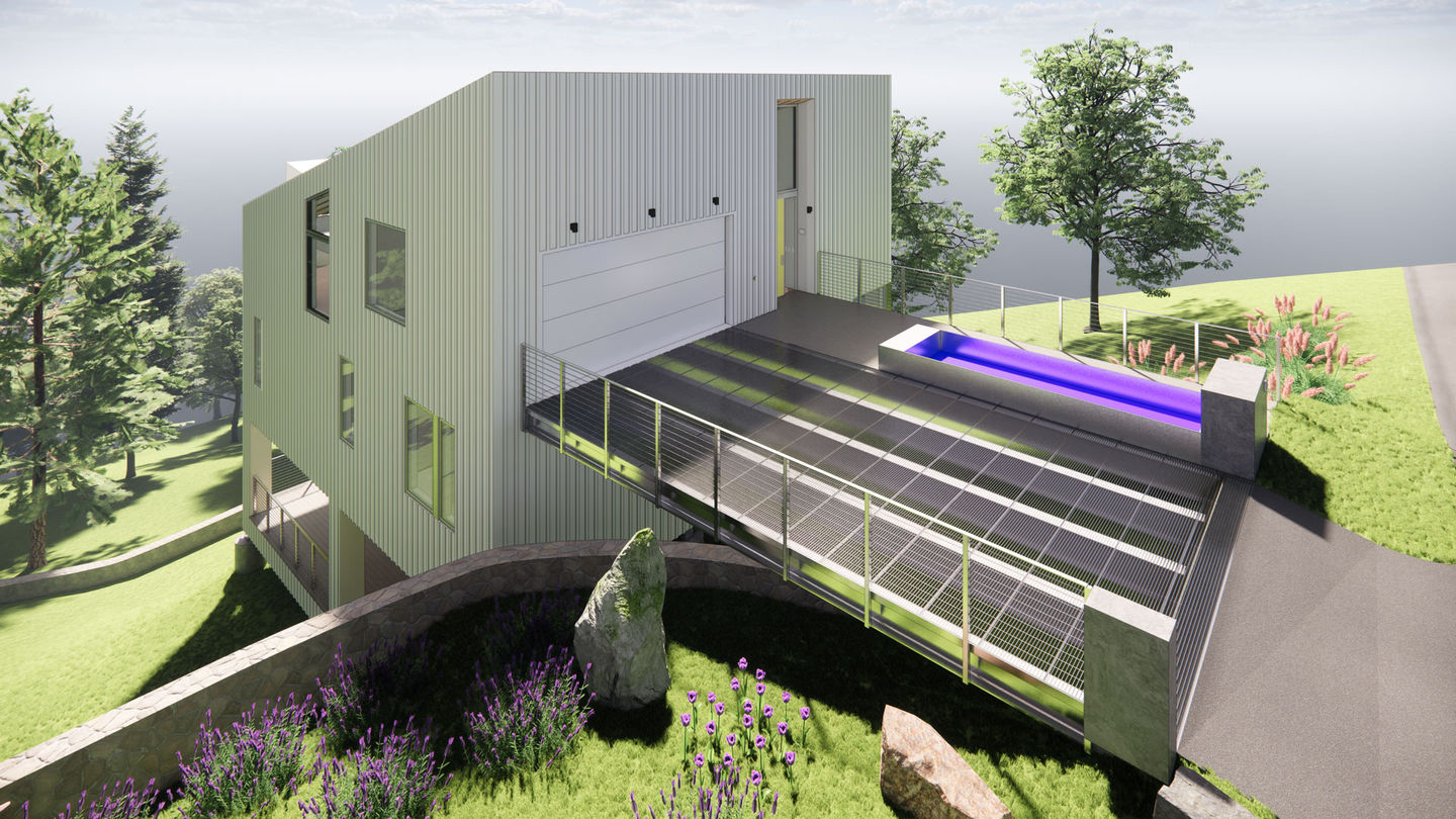 This modern cliff house hovers above its unique site on concrete piers with a roof line that follows the assertively steep topography. A fruitful collaboration between client and architect carries throughout, where thoughtful details enhance the voluminous interior forms connecting rafter, wall, and exterior openings.